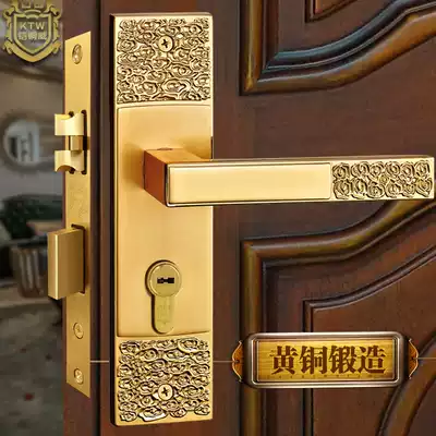 Armored copper Wei pure copper room golden door lock new Chinese indoor solid wood hand lock all copper silent handle copper lock