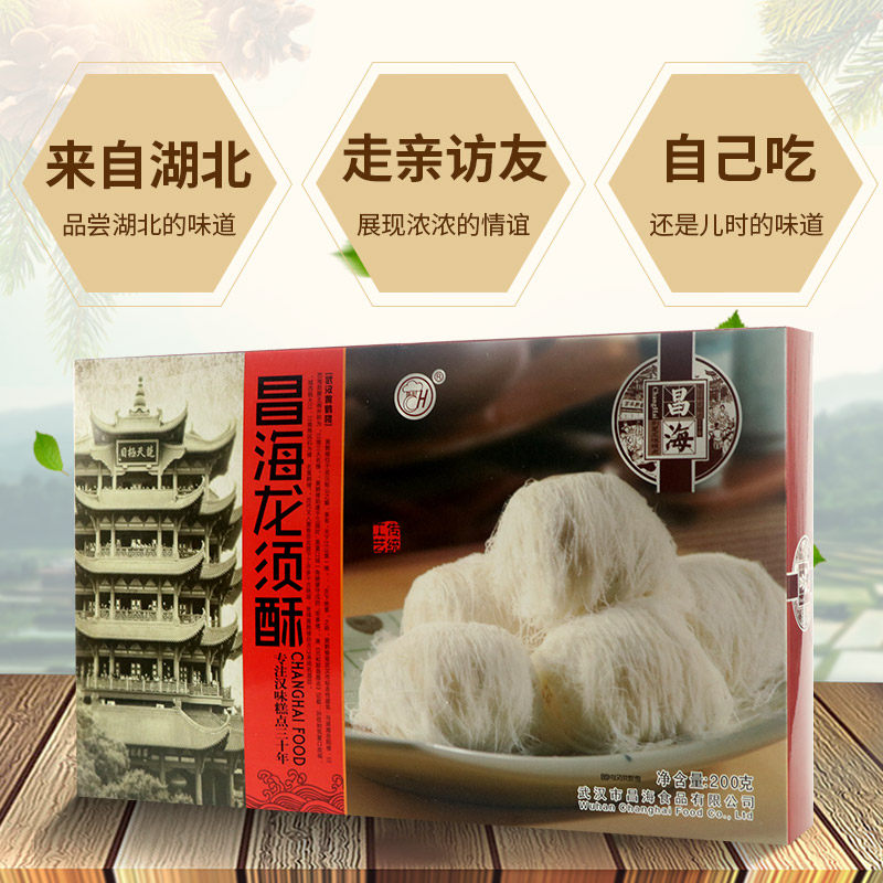 Chuweitang Changhai Dragon Beard crisp Hubei Dragon Beard sugar 200g Traditional pastries Nostalgic snacks Dessert heart specialty gift box
