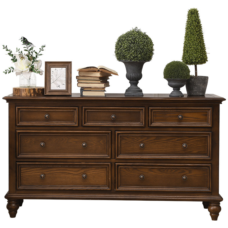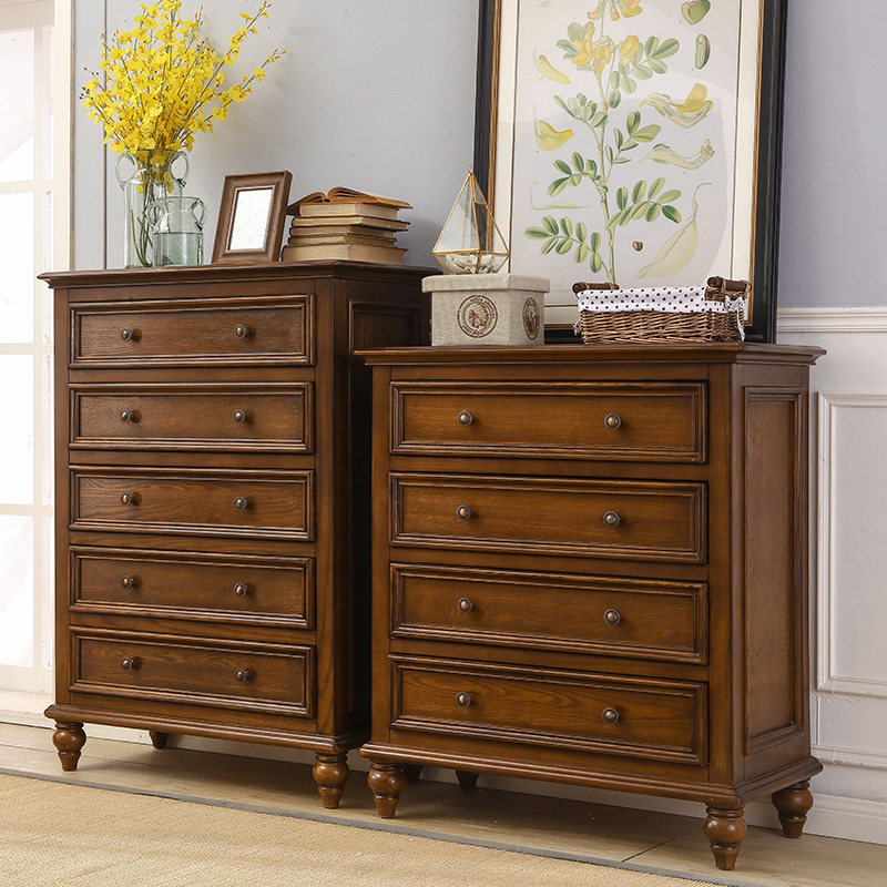 American light luxury cupboard bedroom porch cabinet 5-bucket cupboard solid wood drawer cabinet retro locker