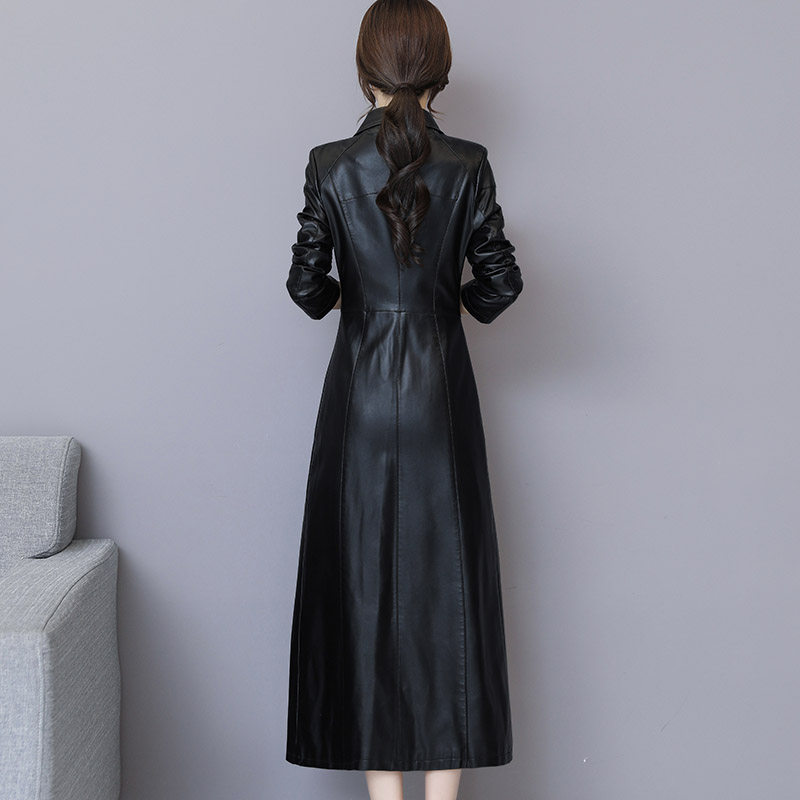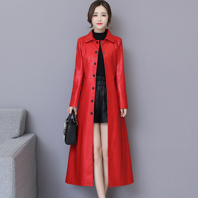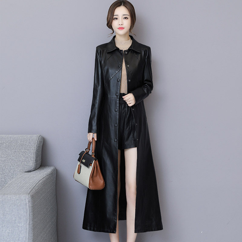 Spring and autumn new Hainen genuine leather leather clothes female medium long version over knee fashion leather windjersey sheep leather plus cotton coat special price