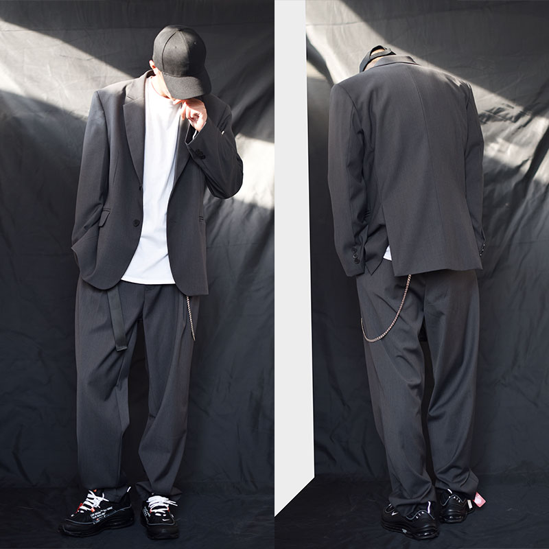 Salt pants Mopping suit Wide leg pants Yuppie straight pants Male hanging texture Harajuku style dad pants loose