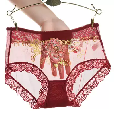 Sexy embroidery low waist transparent perspective pure cotton lace women's sex panties sex underwear passion suit show