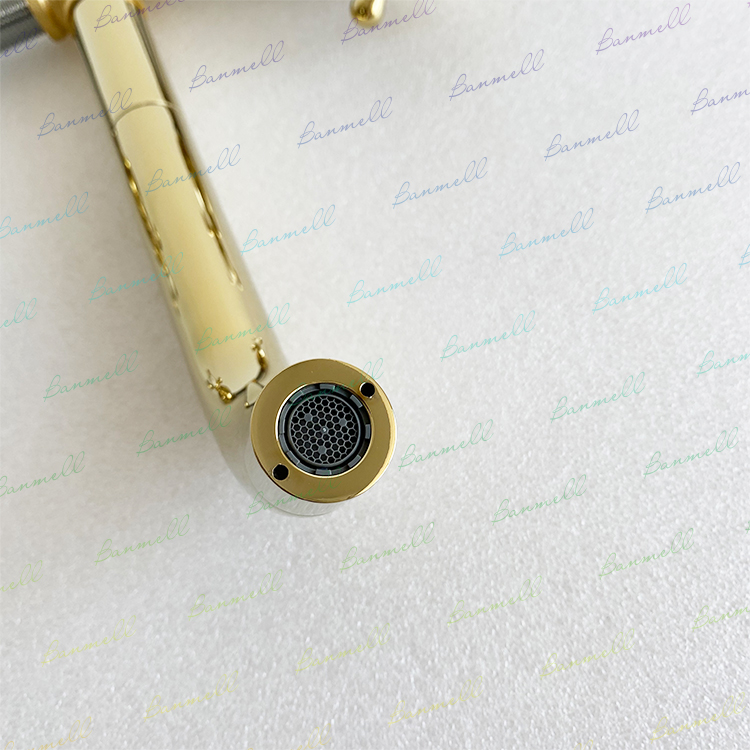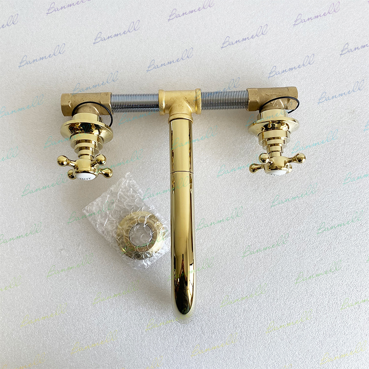 Exported to the UK through WS, the original single NP mouth, golden retro ceramic double handle, concealed into the wall basin faucet
