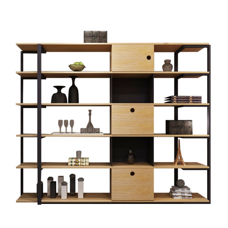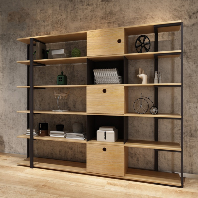 Nordic solid wood bookcase bookcase American loft industrial style retro iron rack floor rack display rack