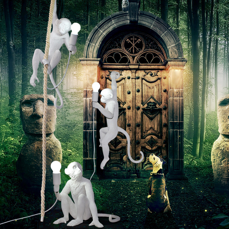 Nordic creative personality industrial wind animal wall lamp corridor dining room balcony children's room study hemp rope monkey wall lamp