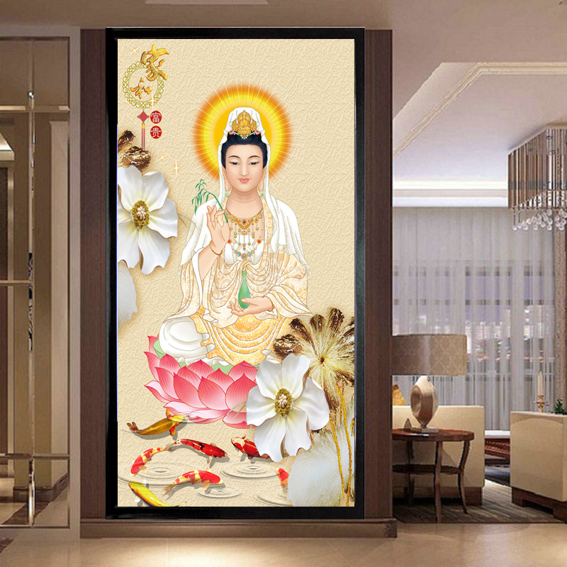 Cross embroidered diamond embroidered 2022 new living-room full drill for sitting lotus Guanyin Buddha statue series with brick and crystal diamond painting 5D