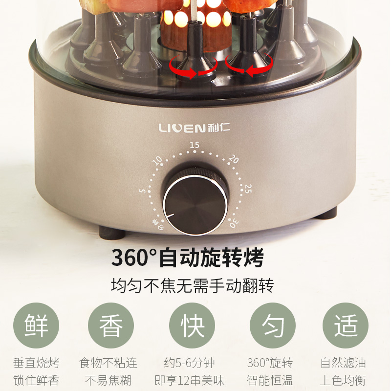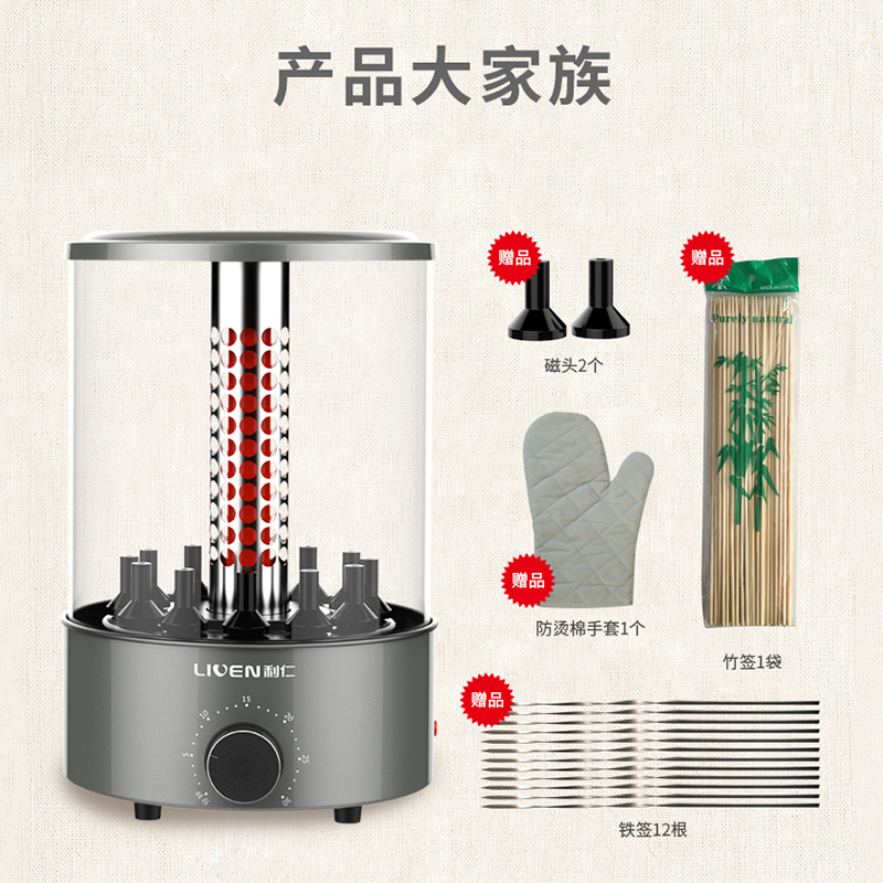 Lijen J121 Electric Oven String Burning Machine Home Automatic Rotation Indoor Small Barbecue Cup Timing Control