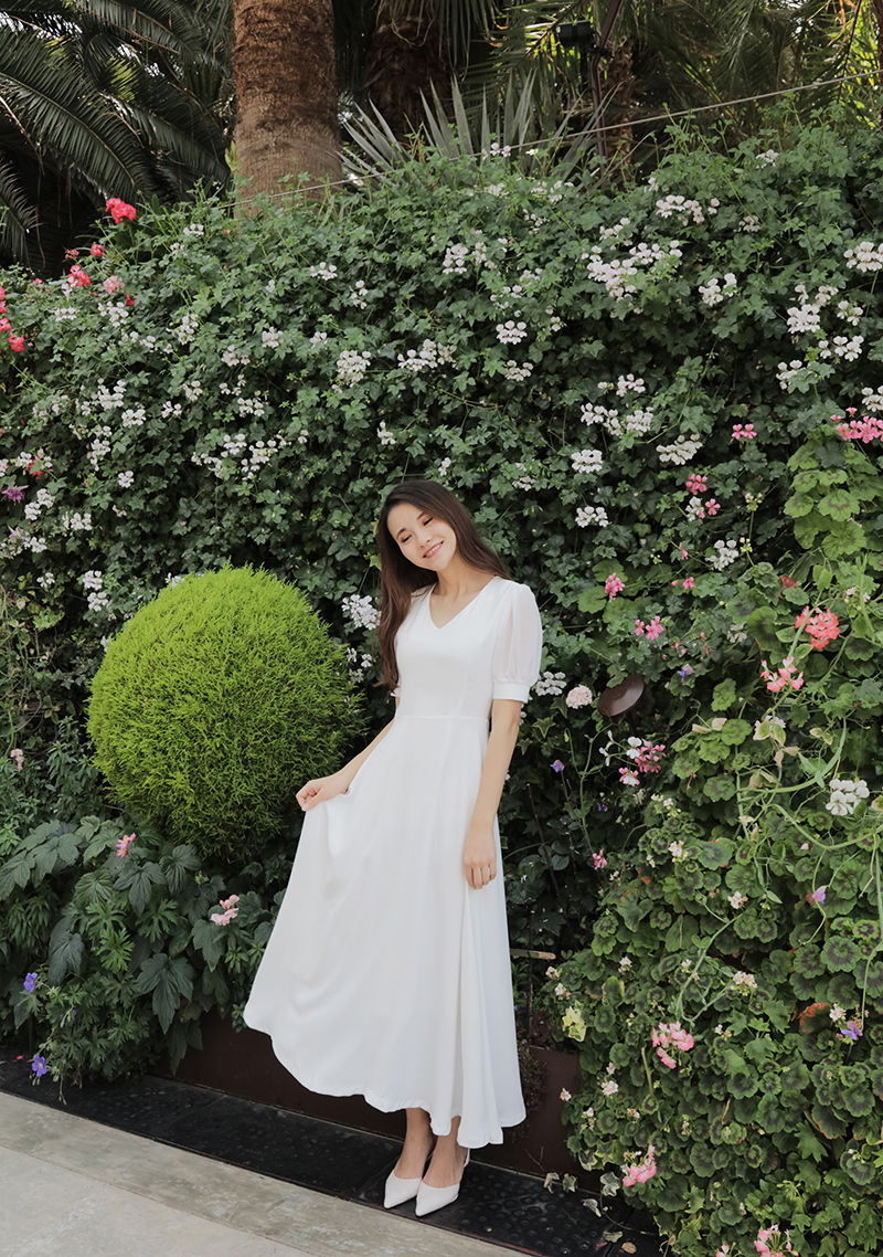 > Korea retro minimalist light wedding dress French style V collar art lawn wedding gown out of the house