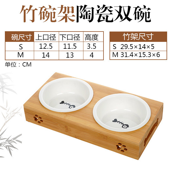 Cat Bowl double bowl cat food basin bamboo rack ceramic cat rice bowl drinking stainless steel cat food bowl dog bowl Bowl Bowl cat supplies