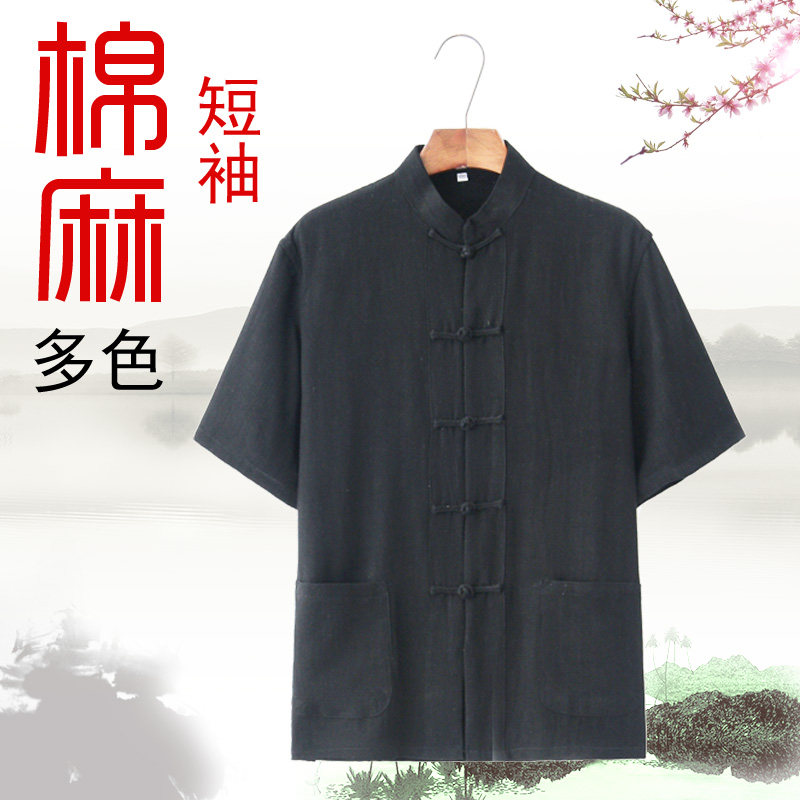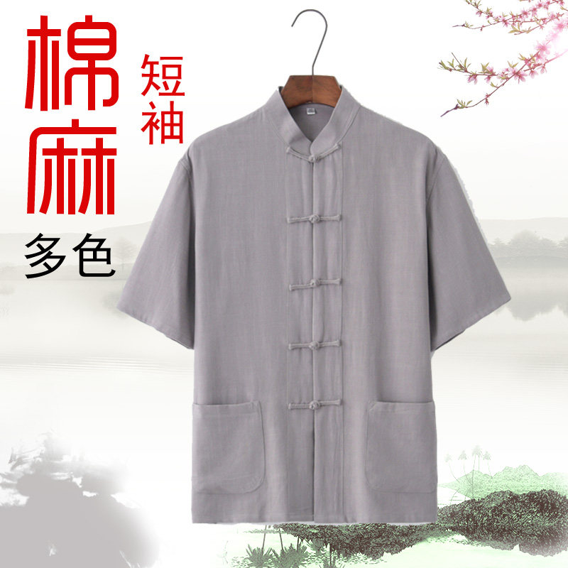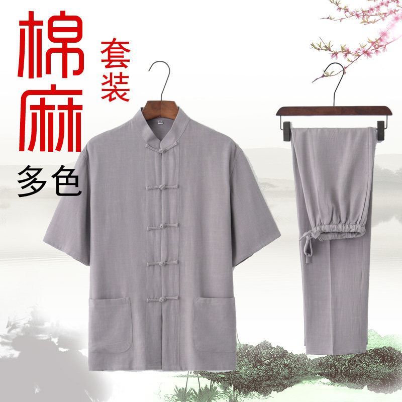 Tang dress male middle-aged old suit daddy retro linen short sleeves Chinese summer clothes Chinese style Han clothes meditation clothes
