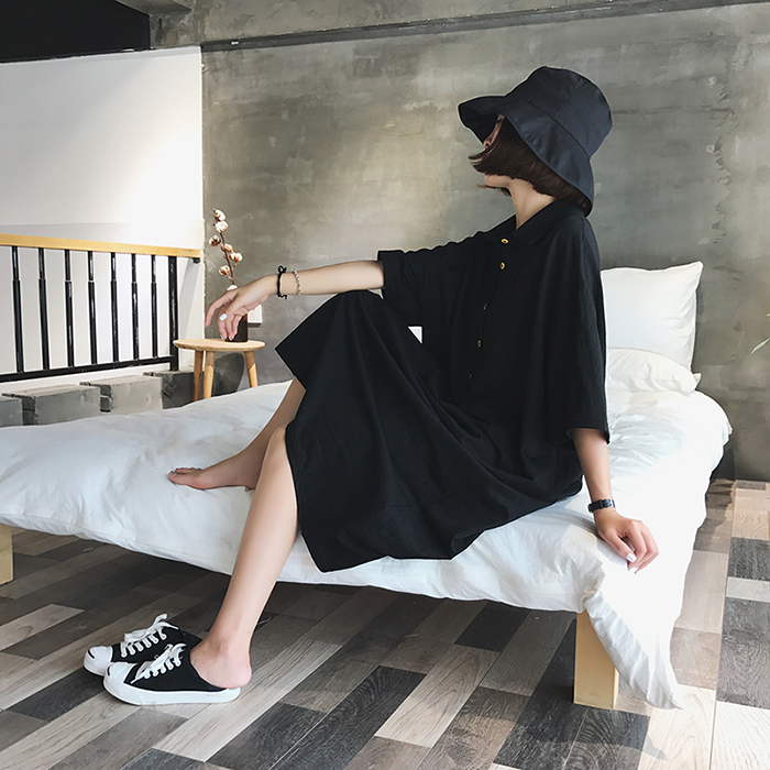 Pregnancy Woman Dress Summer Dress New Korean Version Medium Long Version Snowspun Foreign Fashion Great Size Loose 200 Catty Short Sleeve Skirt