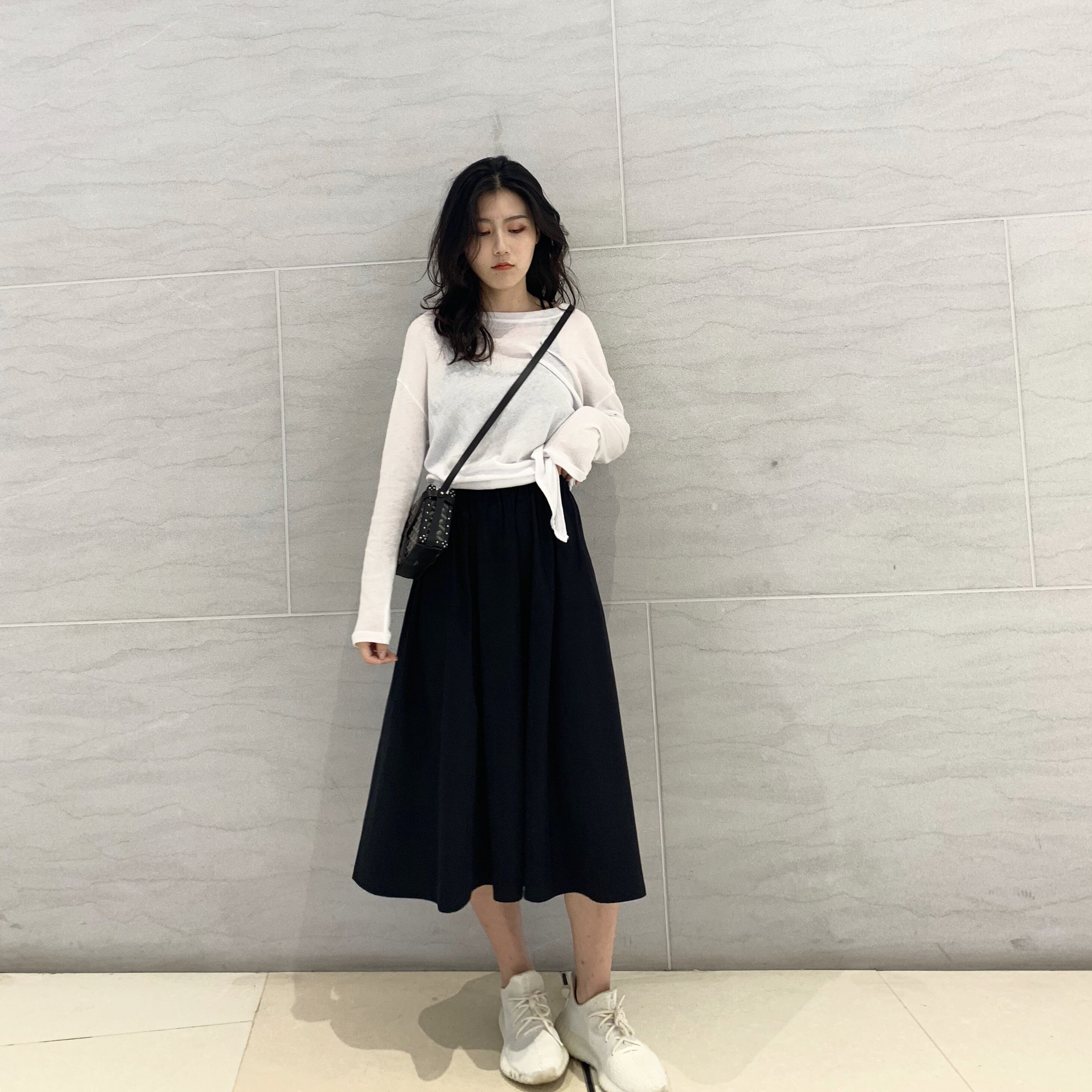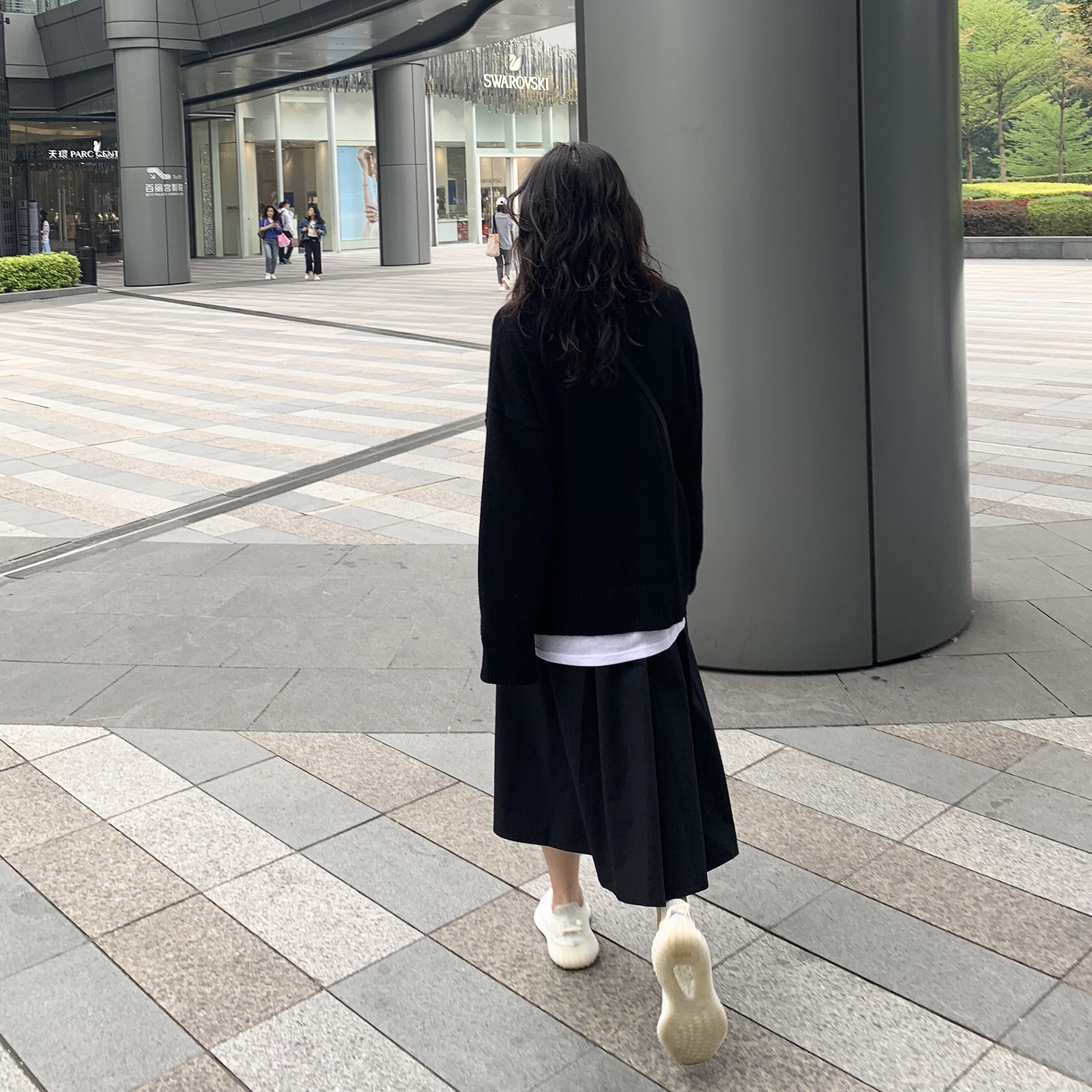 BLAKCY 2022 spring new high waist elastic waist black fluffy skirt long temperament skirt women