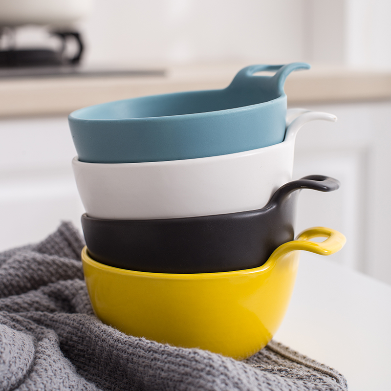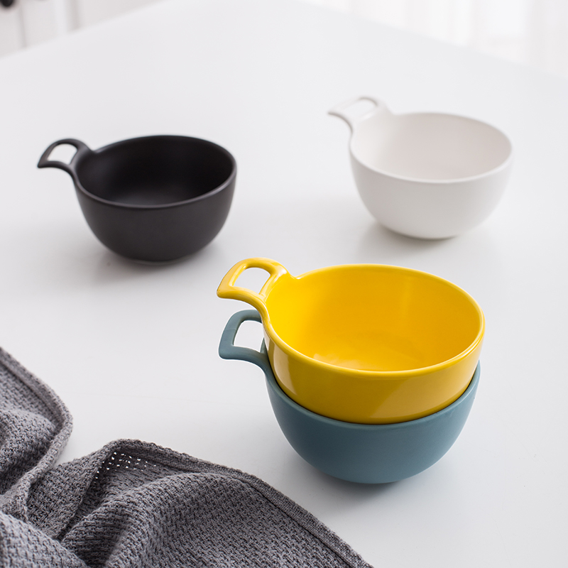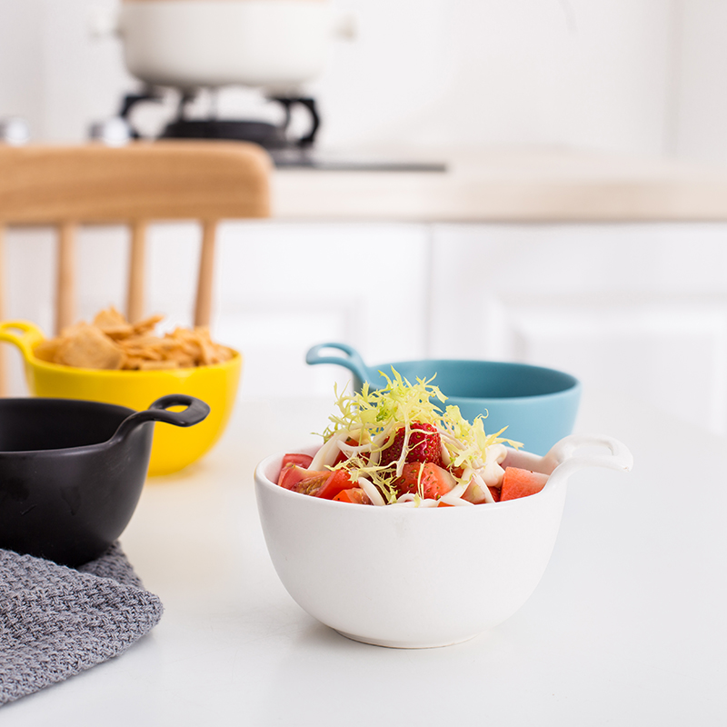 Japanese-style creative ceramic single-ear bowl household cute soup bowl rice bowl Ikea breakfast dessert bowl seasoning dipping bowl