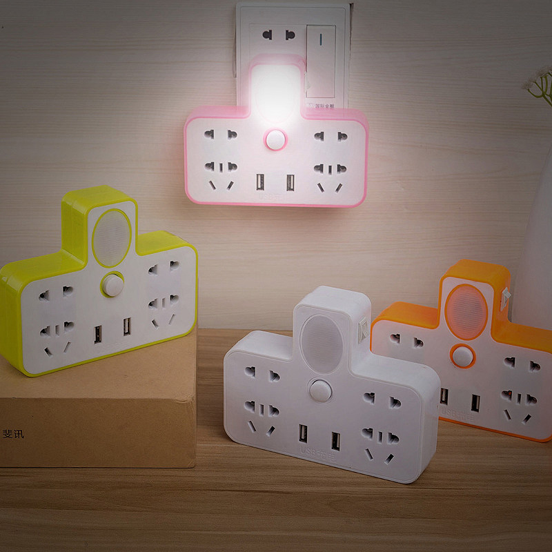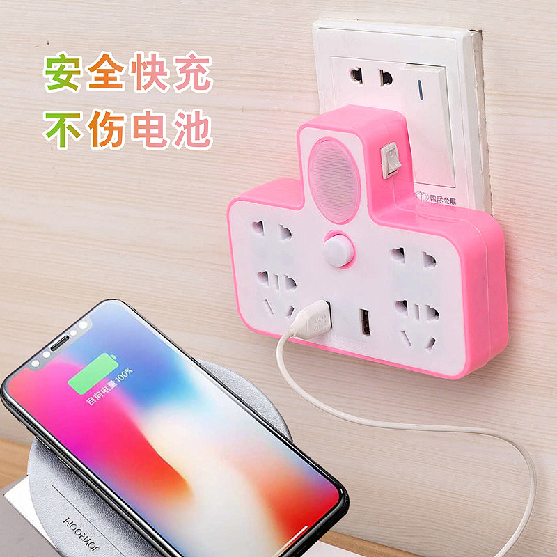Household socket converter one-turn two-three-four multi-function conversion plug usb plug-in board with night light wireless