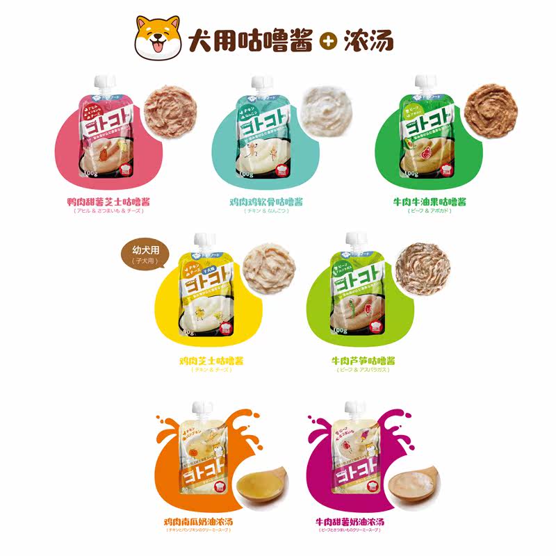 Puppy-chicken egg yolk (yellow bag) puppy-new chicken egg yolk whole dog-chicken cartilage (Lake blue bag) whole dog-Duck Sweet Potato cheese (pink bag) whole dog-beef avocado (Green Bag)