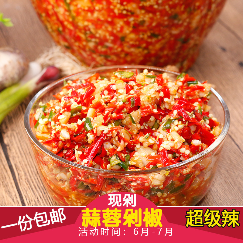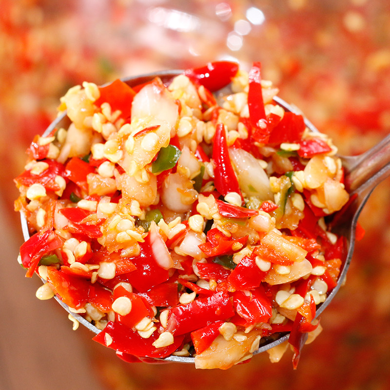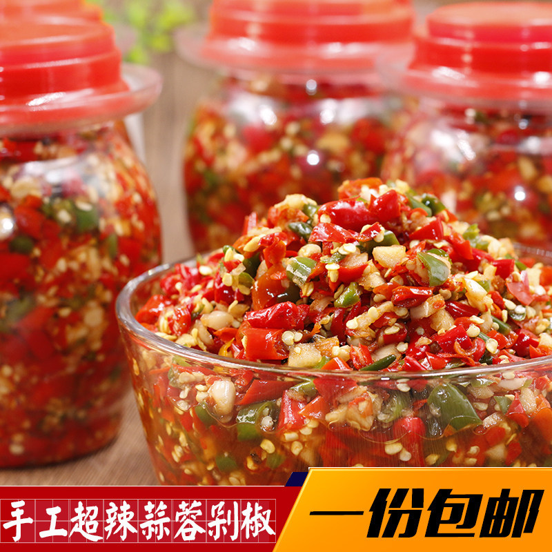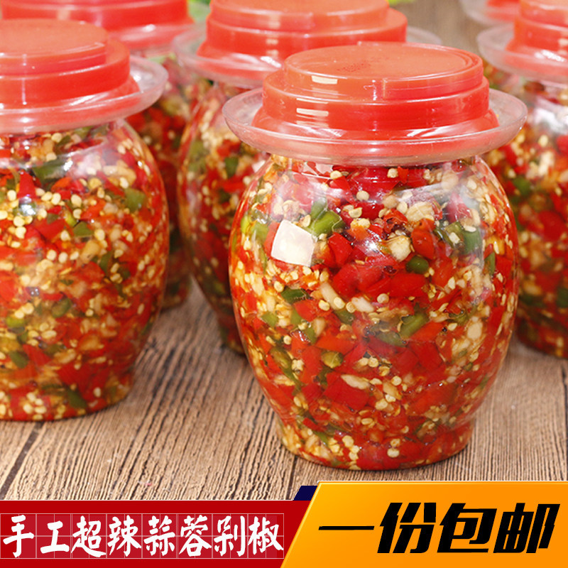 Special spicy garlic chili sauce a bottle of farm chopped pepper spicy food Green red pepper fish head seasoning