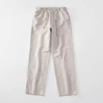 Men's spring and autumn breathable casual cotton linen loose straight pants yoga casual pants literary retro elastic drawstring