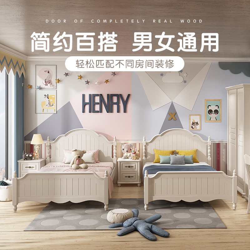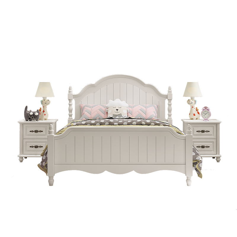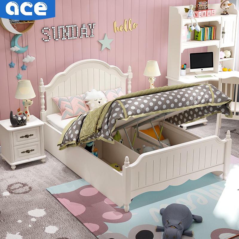 Solid wood children's bed girl single bed 1 35 meters modern minimalist girl bed white American princess bed ins style