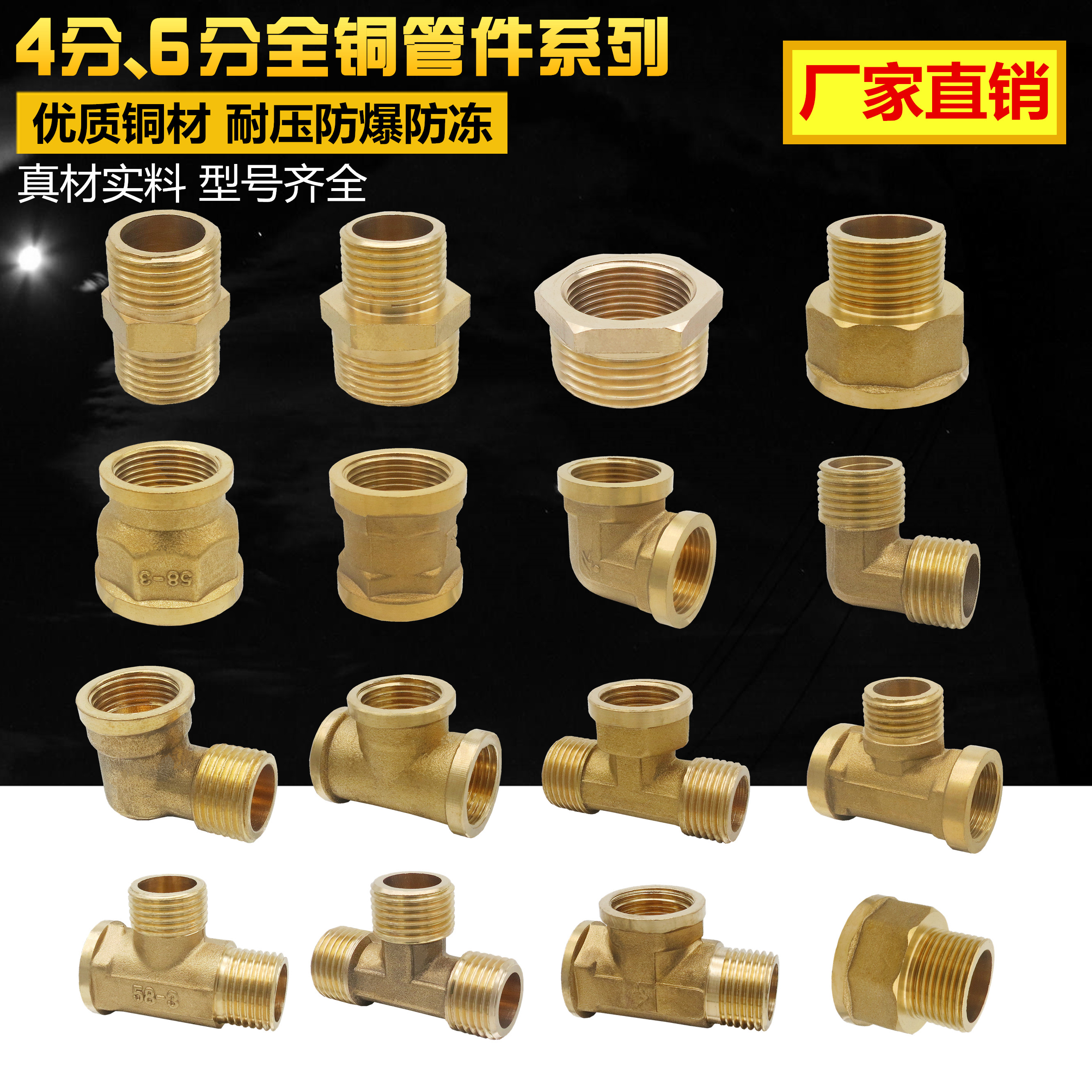 Full copper joint 4 - 6 - 4 - point filament of wire elbow exterior wire directly diameter of the core fittings three - way fittings clamp