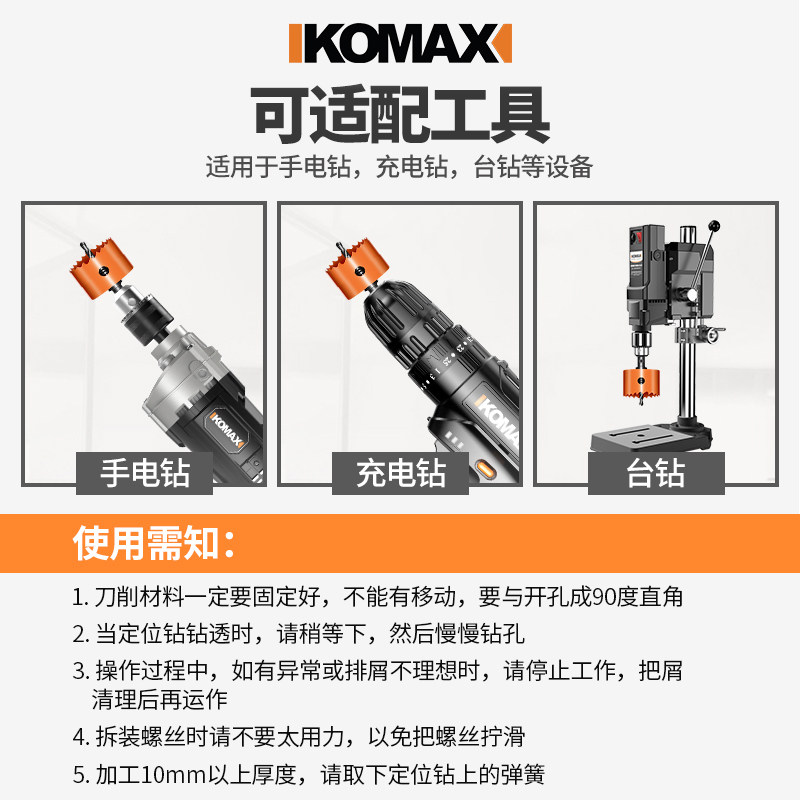 Komez double metal driller woodworking plastic reaming drill head round punching cylinder light plasterboard opening deity