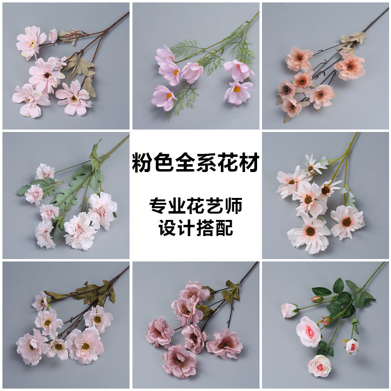 Wedding Celebration Flower Diving Pink pink fake floral flower art single branch long rose peony embroidered ball road leading flower arrangement flower platoon