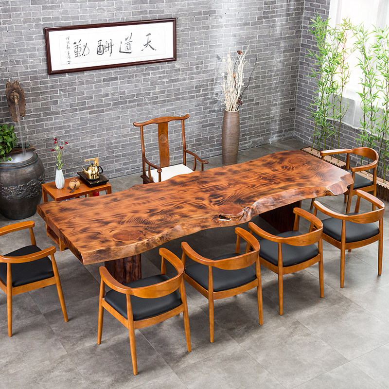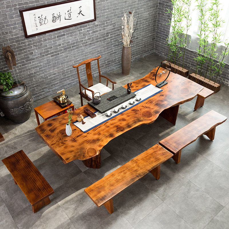 Solid wood tea table New Chinese log large plate Gongfu tea table and chairs combination minimalist modern living room tea tea tea consolidation