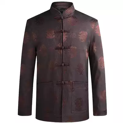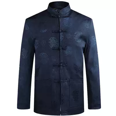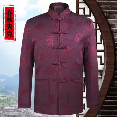 Tang suit men's autumn jacket, middle-aged and elderly long-sleeved jacket, dad Chinese national style retro casual top, grandpa's outfit