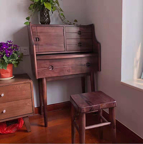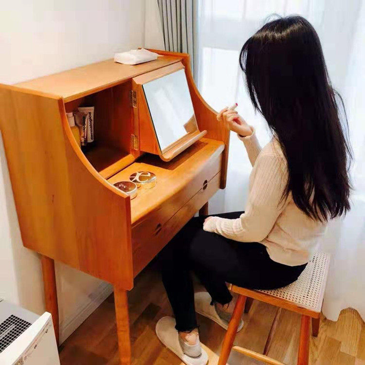 Nordic Solid Wood Makeup Bench Brief Modern Small Household Type Home Princess Mini Makeup Table Bedroom Bedside Containing Table