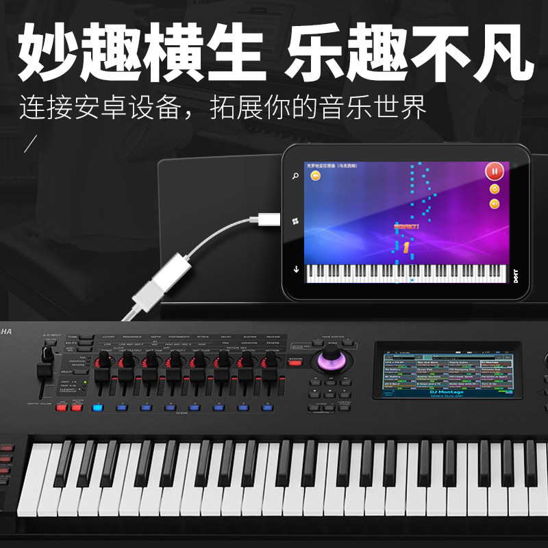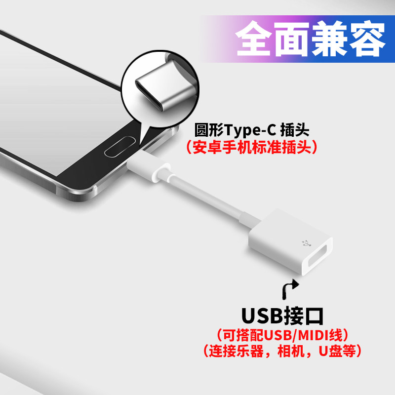 Electric piano electronic keyboard drum midi keyboard connects Android phablet otg type-c instrument cable