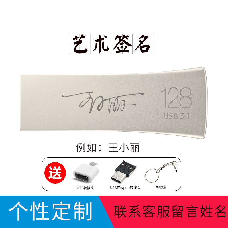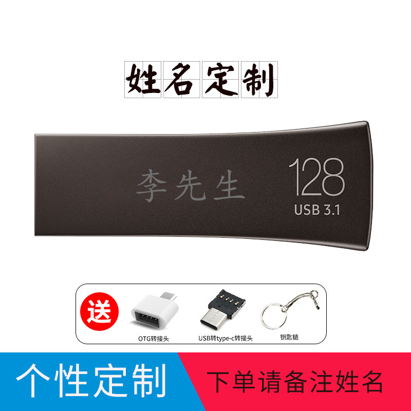 Samsung U disc 128g Enterprise Custom Laser lettering USB with Disc USB3 1 High Speed Personality Creative Metal 128g with Disc Upan computer Vehicle Dual-Use Disc Large