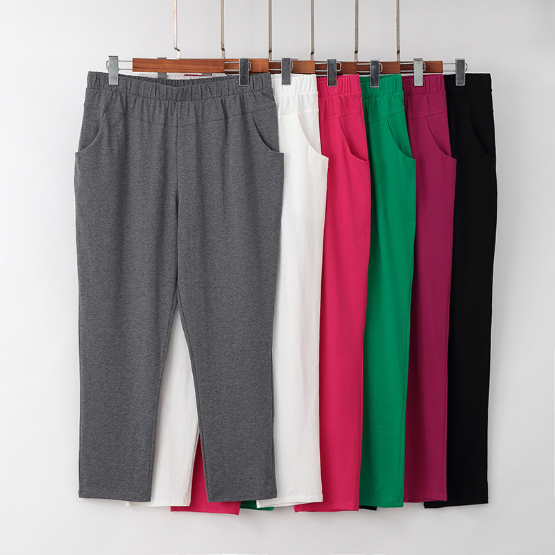 Plus fat plus size women's pants high elastic fat MM200 catties thin section nine-point pants high waist loose women's casual pants