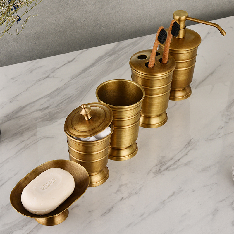 Imitation ancient bronze-made mouthwatering cup antique bronze-made toothbrush cup antique bronze-made bath liquid bottle imitation ancient bronze-made storage tank imitation ancient bronze-made soap dish holder imitation ancient bronze (five-piece suit)
