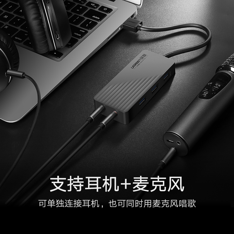 Green United usb sound card external desktop laptop computer free of drive 3 5 audio connector headset microphone sound box independent converter HUB3 0 high speed splitter extension one drag four