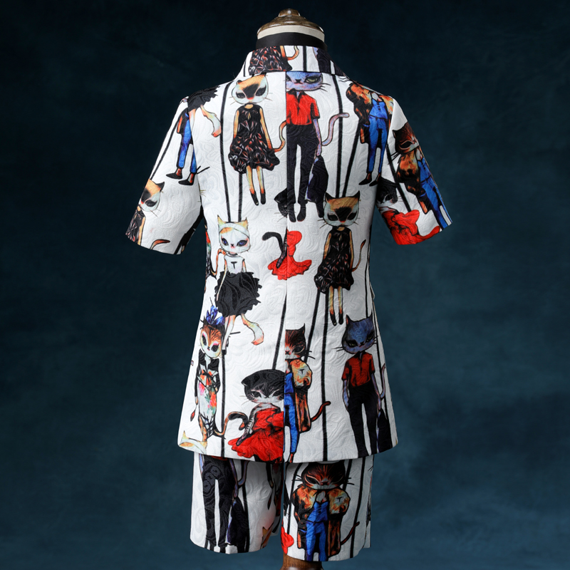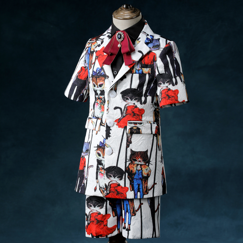 Flower color Two sets (jacket pants) Colorful four pieces (jacket pants black short shirt collar flower)
