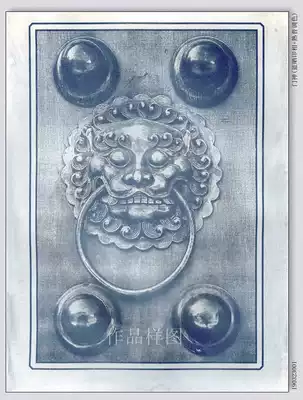 Classical printing method, blue drying, original photography works:Door God handmade craft, retro nostalgic photos