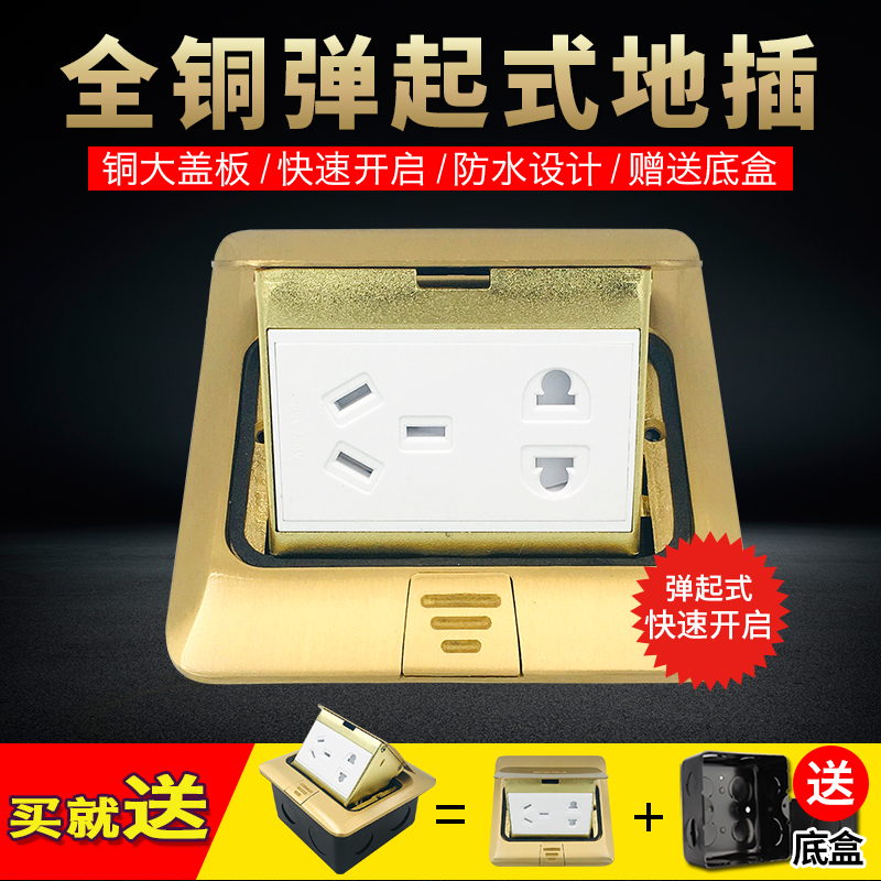 International Electrics Full Copper Waterproof No Damping Five Holes Ground Plug Home Power Network Ground Plug Pop-up Floor Socket-Taobao