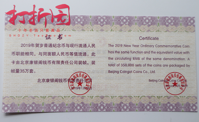 Spot Zhengzong Kang Silver Cabinet 2019 Pig Year Commemorative Coin Card Coin Pig Year RMB10 Lunar New Year commemorative coin card coins