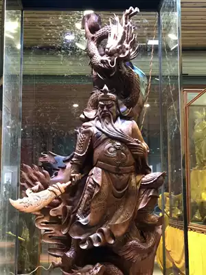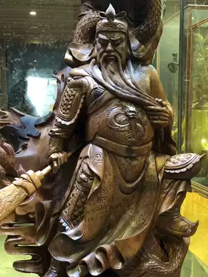 Wood carving root carving ornaments living room Laos safflower pear "Royal Dragon Guan Gong" glass frame specifications: 90-65-232