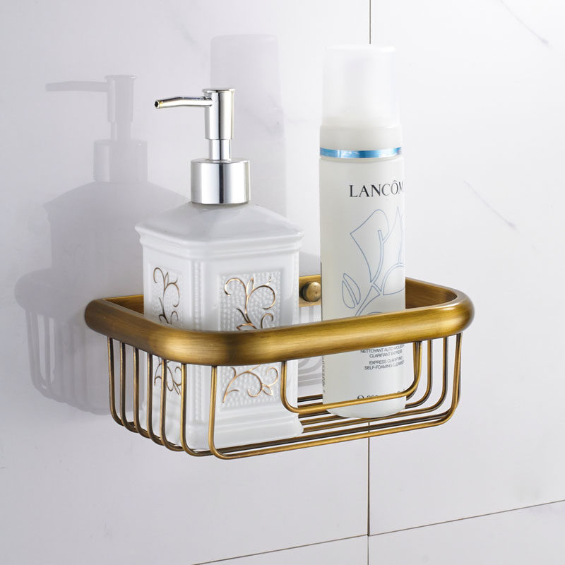Bronze Antique Quad Paper Towel Rack Mesh Basket Wall-mounted Eu Style Dressing Room Golden Bathroom Shelf Bathroom Shelf single layer