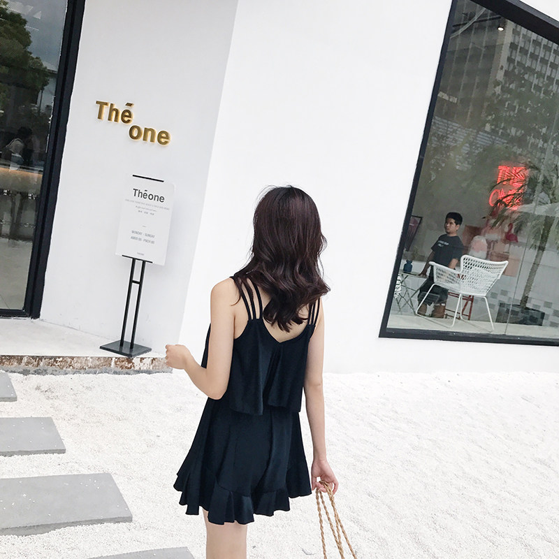 DK swimsuit women's one-piece black belly cover is thin, fresh, conservative, students, small breasts, large size, hot spring, small fragrance