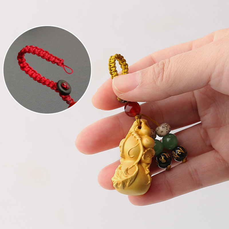 Yellow Yang wood Carved Buddha Statue gourd handlebar piece red wood key button man with man to play with the car pendants text to play the swing piece