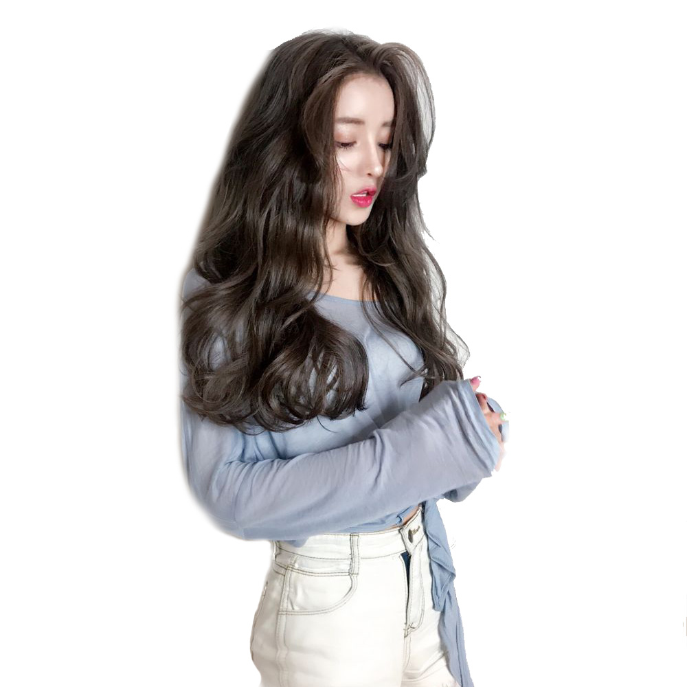 Wig female long curly hair big wave U-shaped half-head cover real hair net red invisible streak hair piece in 37 points