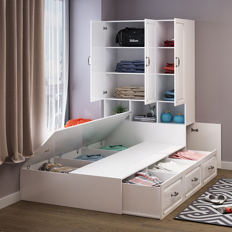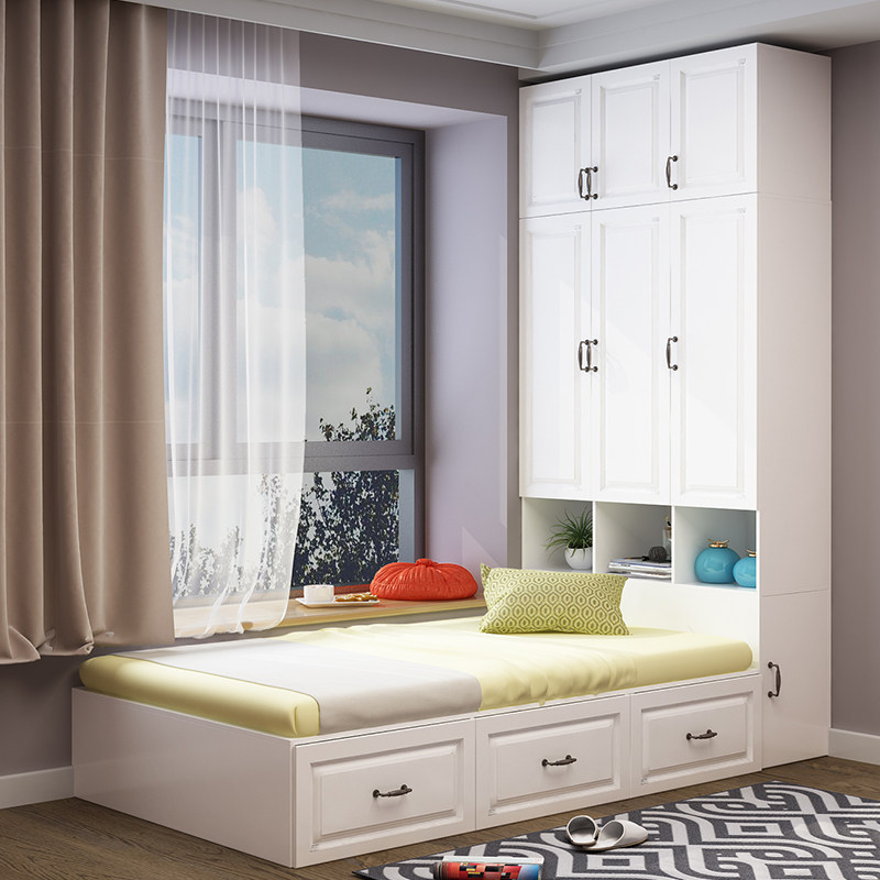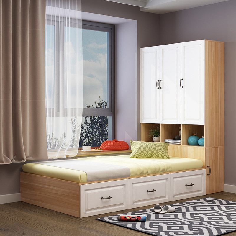 Tatami bed wardrobe integrated small apartment bedroom simple tatami bed multifunctional combination children's bed with desk