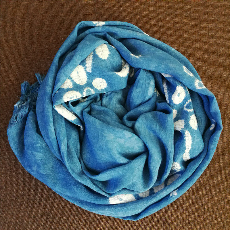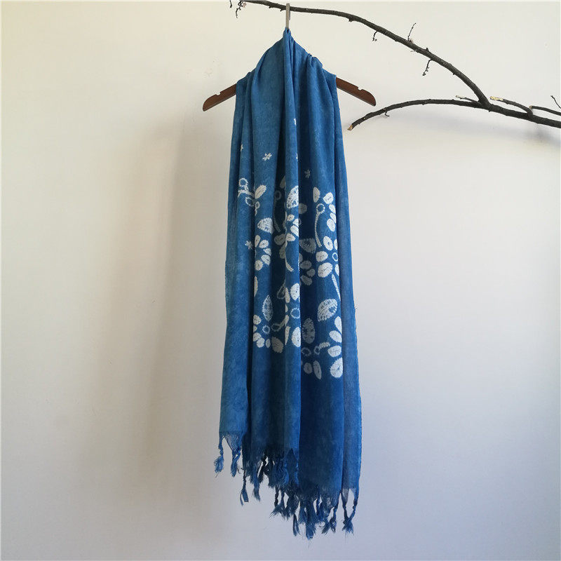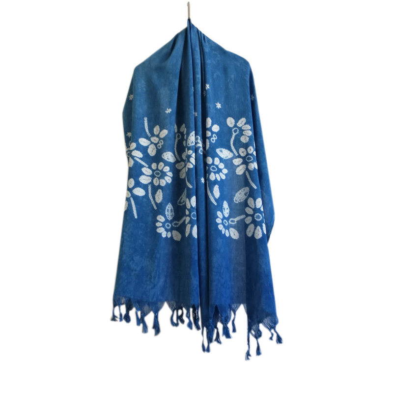 Yunnan Bai nationality hand-dyed scarf Dali vegetation dyed plant blue dyed batik ethnic style scarf shawl for men and women