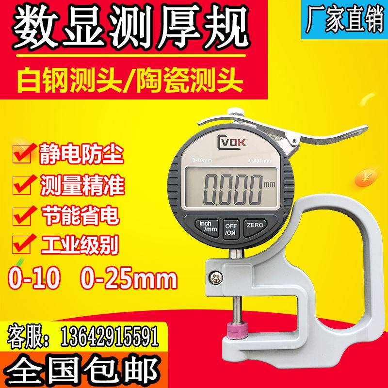 Sivaka digital display micrometer thickness gauge 0-10mm thickness gauge Film paper height Tape Wire material Leather