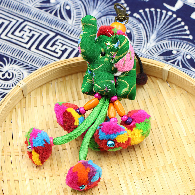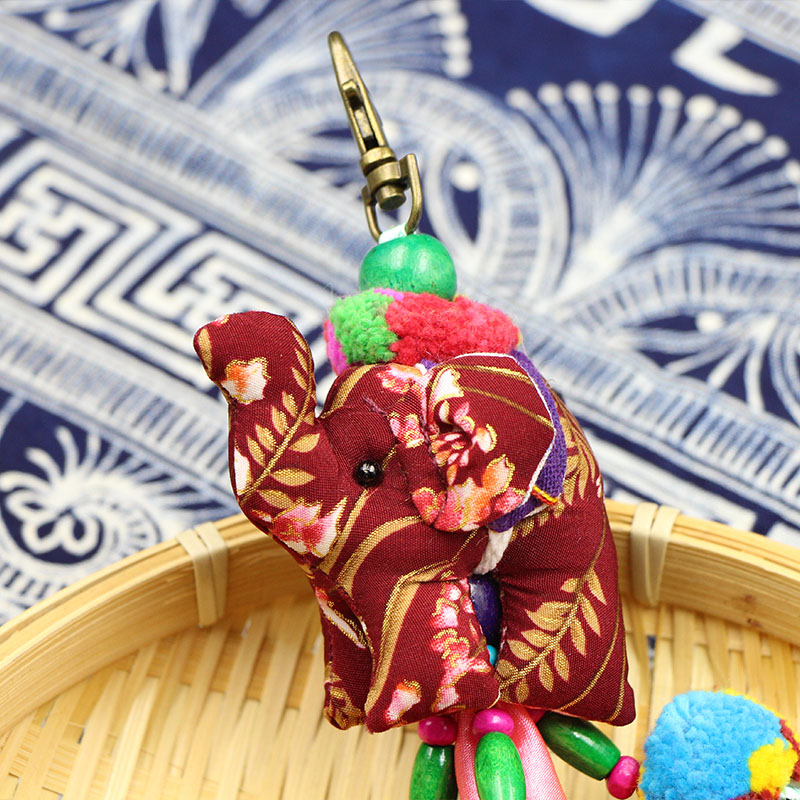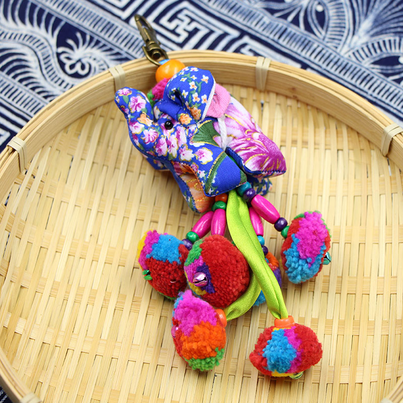 Thai cloth art small elephant bag hanging handmade ethnic wind flower bugball key button Southeast Asian tourist souvenir gift