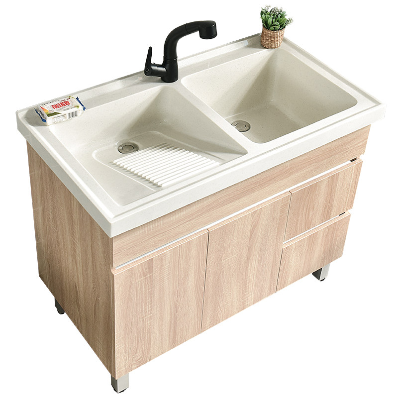Solid wood laundry basin Double sink washbasin laundry cabinet Laundry pool Balcony laundry sink Simple floor cabinet Bathroom cabinet Bath cabinet