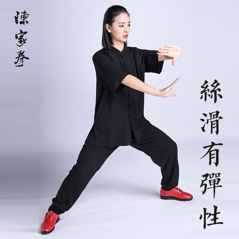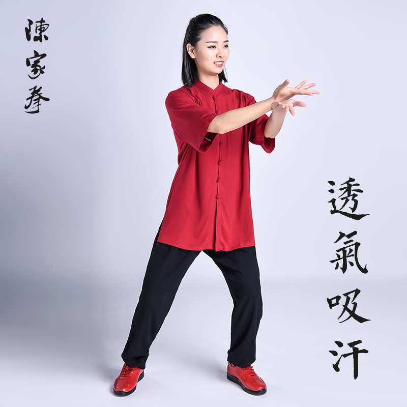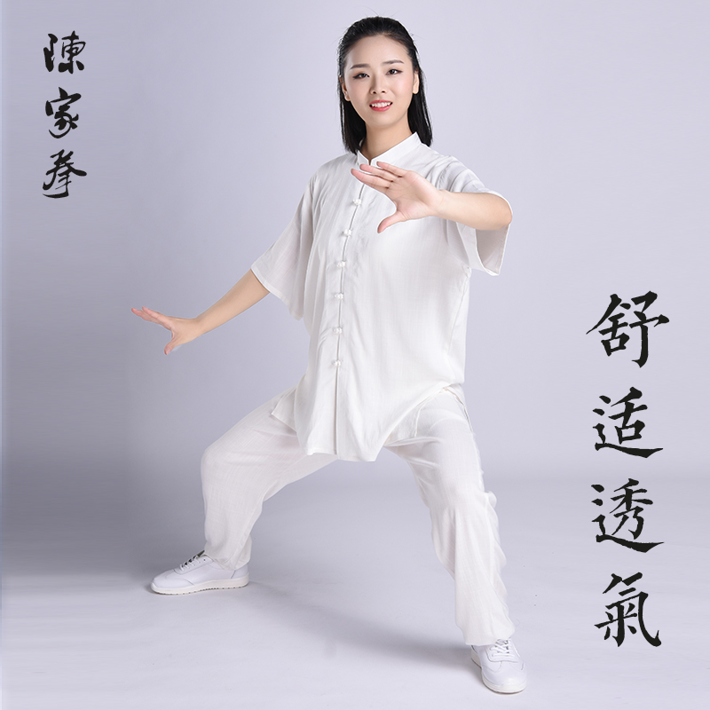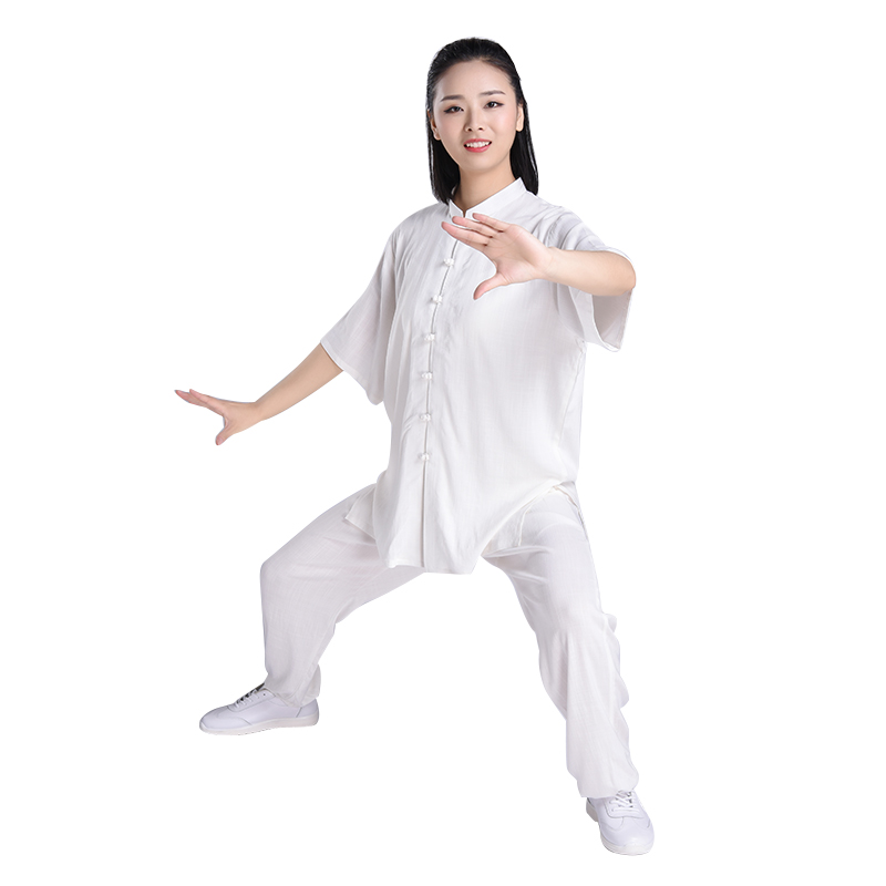 Tai Chi Suit Stretch Cotton Short Sleeve Spring and Summer Tai Chi Suit Women's Breathable Martial Arts Suit Exercise Performance Suit Morning Exercise Clothing