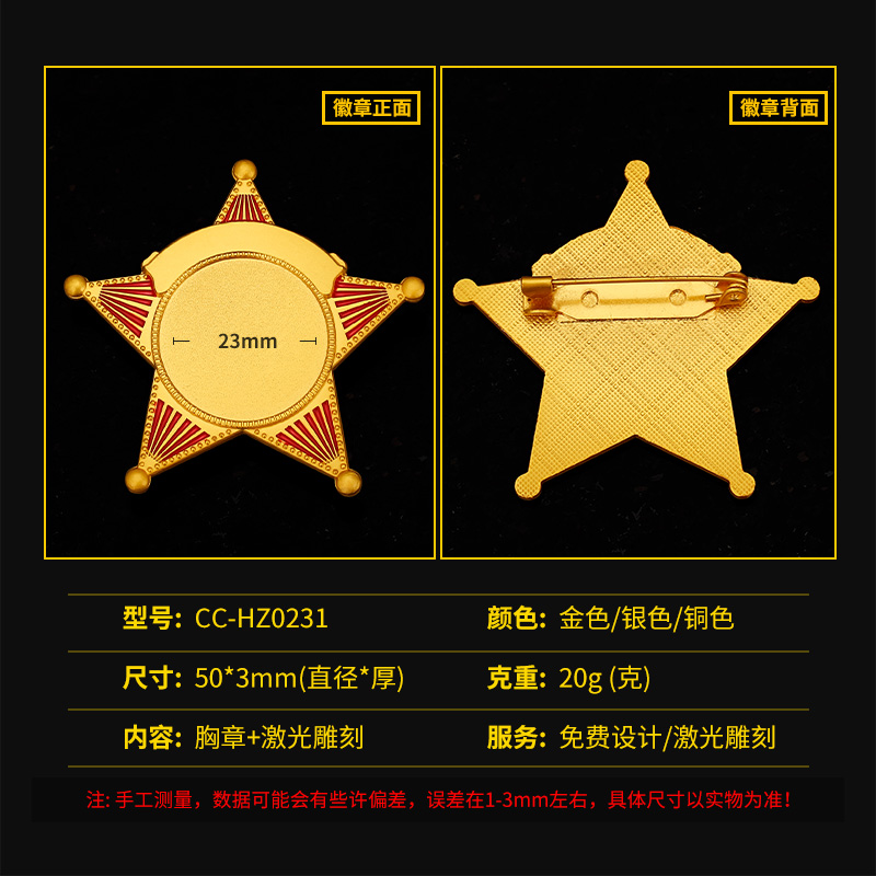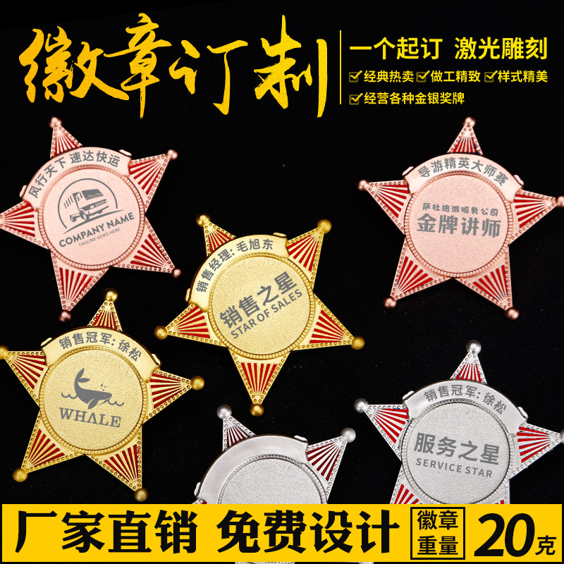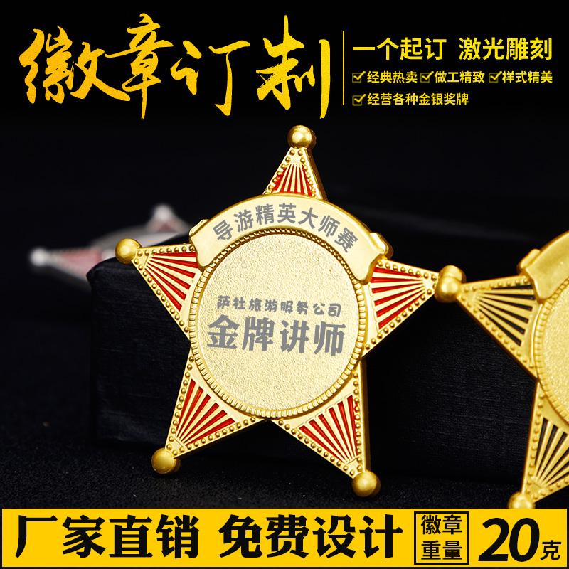 Painted metal five-pointed star badge men's suit brooch school badge class badge badge badge badge production