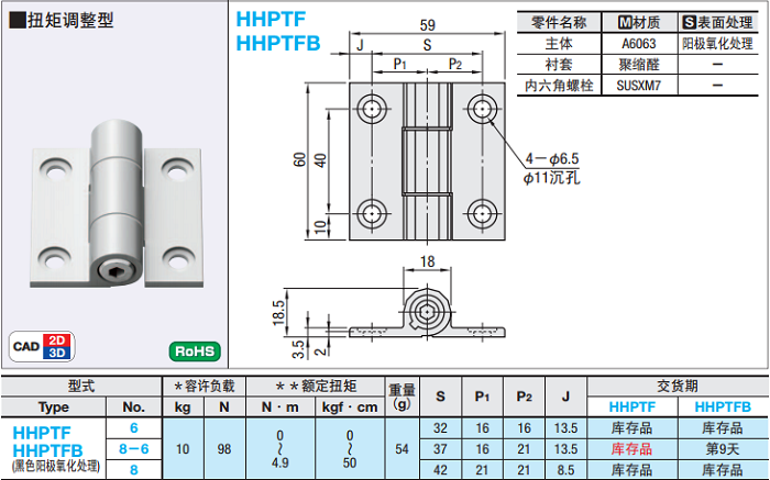 HHPTFB6 HHPTFB8-6 HHPTFB8 HHPTFB8 Torque Adjusted Hinge Aluminum Alloy Page